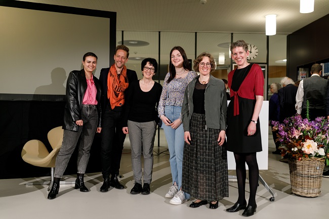 «Ausgezeichnet» – Buchhandlung und Verlag des Jahres 2021 feiern! Dieser Anlass war eigentlich für letzten Dezember geplant, wurde aber wegen der Pandemie auf den Frühling verschoben. Letzten Freitag fand er nun in der Aargauer Kantonsbibliothek statt. Andrea Voellmin, Leiterin Bibliothek und Archiv Aargau, sprach ebenso im festlichen Rahmen wie Claudio Barandun und Marie-France Lombardo von der Edition Moderne. Die Geschäftsführerinnen der Kronengasse, Ursina Boner und Ursula Huber, hatten den Anlass initiiert und stellten am Schluss ihre Nicht-Lieblingsbücher vor (inklusiv Begründung, warum für einmal nicht die «Lieblingsbücher»). Zur Feier gehörte auch eine Lesung mit Maeva Rubli und Anisa Alrefaei Roomieh («bei mir, bei dir», Edition Moderne) und Markus Kirchhofer («Matter», Edition Moderne).