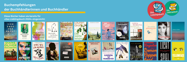 Seit einer Woche können Buchhändlerinnen und Buchhändler der Deutschschweiz ihr Lieblingsbuch nominieren. «Das Lieblingsbuch 2024» ist eine in deutscher Sprache publizierte Belletristik- und Sachbuch-Neuerscheinung (inklusive Übersetzungen), die zwischen April 2023 und März 2024 erschienen ist. Die persönlichen Buchempfehlungen werden auf der Lieblingsbuch-Website neu mitsamt Cover gesammelt.