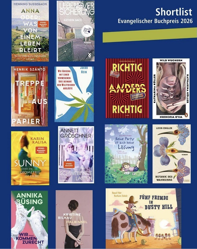 Die Jury nominierte 13 Bücher aus über 130 vorgeschlagenen Titeln für den Evangelischen Buchpreis 2026. Auf der Shortlist befinden sich neun Romane, zwei Sachbücher sowie zwei Kinder- und Jugendbücher – eins davon stammt vom Winterthurer Kinderbuchautor Daniel Fehr: «Fünf Fremde in Dusty Hill», illustriert von Barbara Scholz, Thienemann. Die Jurybegründung zu jedem Titel finden sich auf dem Evangelischen Literaturportal.
