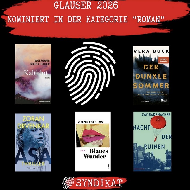 Das Syndikat veröffentlichte gestern die Nominierten für den Krimipreis GLAUSER in fünf Kategorien, ausserdem wird das beste Cover gesucht sowie ein Ehrenglauser vergeben. Kampa ist in zwei Kategorien vertreten: Bester Roman («Blaues Wunder» von Anne Freytag) sowie «Bloody Cover» («Lacroix und der Auftragsmord im TGV» von Alex Lépic). Der Schweizer Autor Sunil Mann wurde in der Kategorie Kurzkrimi nominiert, seine Geschichte befindet sich im Band «Blutige Lippe 5», herausgegeben von Hartmut Marks, Ventura. Alle Nominierten: