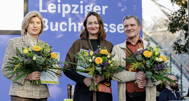 Der Preis der Leipziger Buchmesse ehrt deutschsprachige Neuerscheinungen in Belletristik, Sachbuch/Essayistik und Übersetzung. Den Preis für die beste Übersetzung erhielt Manfred Gmeiner für seine Übertragung aus dem Spanischen von «Unten Leben» von Gustavo Faverón Patriau, Droschl. Den Preis in der Kategorie Sachbuch erhielt Marie-Janine Calic für «Balkan-Odyssee, 1933–1941. Auf der Flucht vor Hitler durch Südosteuropa», C. H. Beck. Der Belletristik-Preis ging an Katerina Poladjan für «Goldstrand», S. Fischer.