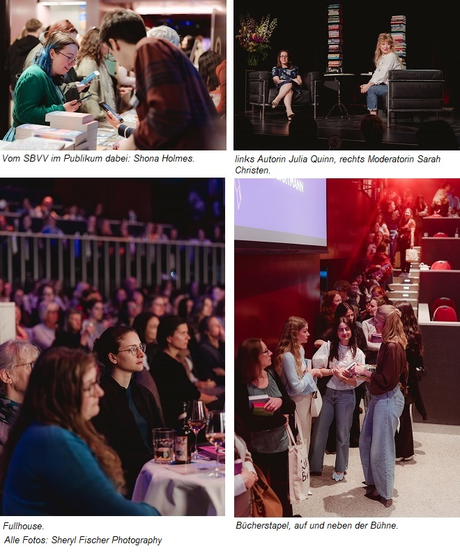 Am Montagabend startete die dritte Ausgabe des Orell Füssli Book Love Festivals im Bernhard Theater in Zürich mit einem Paukenschlag. Vier Autorinnen und Autoren - Beth O’Leary, Milena Moser, Stefan Gartmann und Julia Quinn - sprachen mit Sarah Christen, Leiterin Jugend & Musik beim SRF und Moderatorin des Orell-Füssli-Podcasts «Über den Bücherrand». Harry Whittaker, der Sohn von Lucinda Riley, konnte leider nicht anwesend sein. Zu den Themen gehörten, wie man den perfekten Kuss beschreibt; wie es sich anfühlt, sein eigenes Buch zum ersten Mal in den Händen zu halten; und erst recht, was im Gefühlsleben passiert, wenn die eigenen Bücher zu einer weltweiten Netflix-Sensation werden. Das Interview mit Milena Moser und Stefan Gartmann wurde für «Über den Bücherrand» aufgezeichnet. Die Zuschauer konnten den Autorinnen und Autoren Fragen stellen und sich am Ende ihre Bücher signieren lassen. Das Festival wurde am Dienstag mit weiteren Interviews mit Literaturstars wie Beth O’Leary, Giulia Enders, Leon Engler und Jean-Luc Bannalec fortgesetzt. Beide Tage waren ausverkauft, insgesamt kamen 736 Besucherinnen und Besucher ans Orell Füssli Book Love Festival. Nicht anders sah es beim Side-Event mit Julia Quinn aus: Der Afternoon-Tea mit der Autorin war mit etwas über 60 Besucherinnen und Besucher ebenfalls ausverkauft.